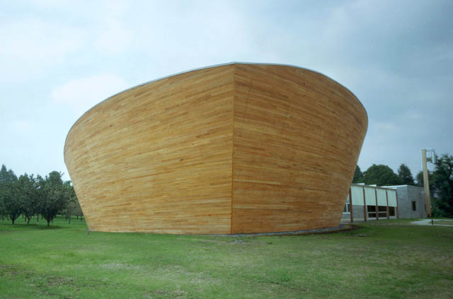 The Riggio-Lynch Chapel in Clinton, Tenn. by Maya Lin flaunts a simple, yet unique design that is both sleek and modern as well as salutes the vernacular architectural forms associated with a boat or basin. The elegance of this project as well as its nautical form fit the program perfectly and represent the function of the space while still being a significant modern form. The pattern of using wood in a chapel setting may be attributed to the vernacular and primitive architecture that chapels began to be realized in but also provides a sense of warmth, connection to nature, and material honesty that is pleasing to experience.